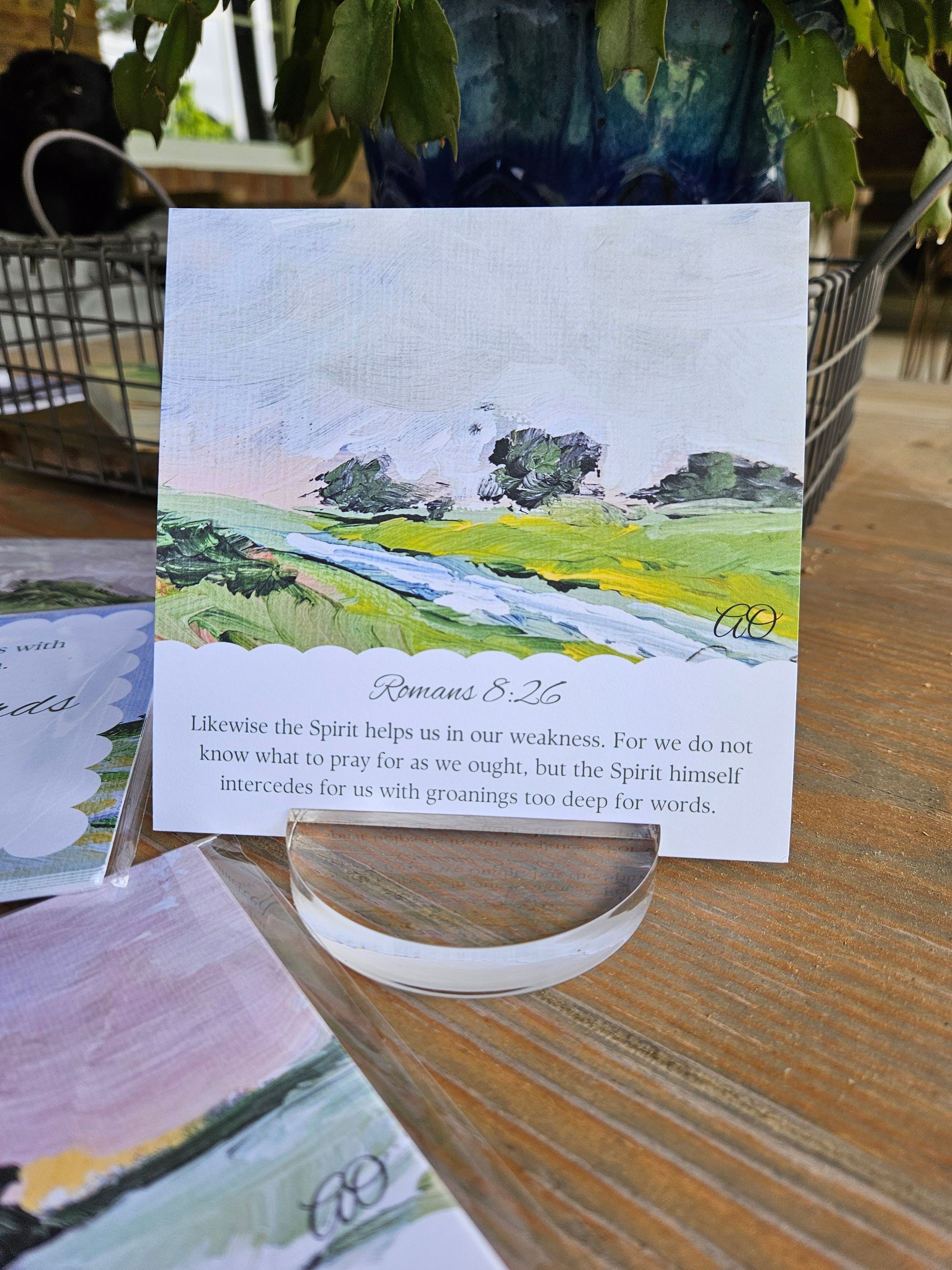 These 5x5 inch scripture cards blend encouraging truth filled verses with serene acrylic landscapes, creating art that speaks to your soul. Versatile and beautifully proportioned, each card stands alone on a shelf, desk, or nightstand—or frame them to make a gallery wall that grounds your space in purpose. Perfect for personal reflection or as a meaningful gift, these cards transform everyday moments into opportunities for the Lord to encourage you through His word.